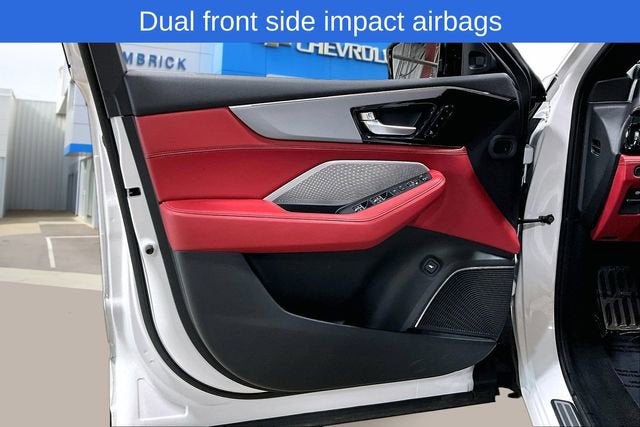 Platinum 2023 Acura MDX A-Spec SH-AWD AWD 10-Speed Automatic 3.5L V6 SOHC i-VTEC 24V LOCAL TRADE, NON SMOKER, Red Leather, 16 Speakers, 3rd row seats: split-bench, 4-Wheel Disc Brakes, Air Conditioning, Apple CarPlay/Android Auto, Auto High-beam Headlights, Auto-dimming Rear-View mirror, Automatic temperature control, Brake assist, Bumpers: body-color, Dual front impact airbags, Dual front side impact airbags, Electronic Stability Control, Exterior Parking Camera Rear, Four wheel independent suspension, Front dual zone A/C, Fully automatic headlights, Garage door transmitter: HomeLink, Heated & Ventilated Front Sport Seats, Heated front seats, Lane departure: Lane Keeping Assist System (LKAS) active, Leather steering wheel, Low tire pressure warning, Memory seat, Navigation system: Acura Navigation System with 3D View, Perforated Premium Milano Leather Trimmed Seats, Power driver seat, Power Liftgate, Power moonroof, Power passenger seat, Power steering, Premium audio system: Acura/ELS Studio 3D, Rain sensing wipers, Rear window defroster, Rear window wiper, Security system, Speed control, Steering wheel mounted audio controls, Tilt steering wheel, Traction control, Trip computer, Turn signal indicator mirrors, Ventilated front seats, Wheels: 20 x 9 Aluminum Alloy.