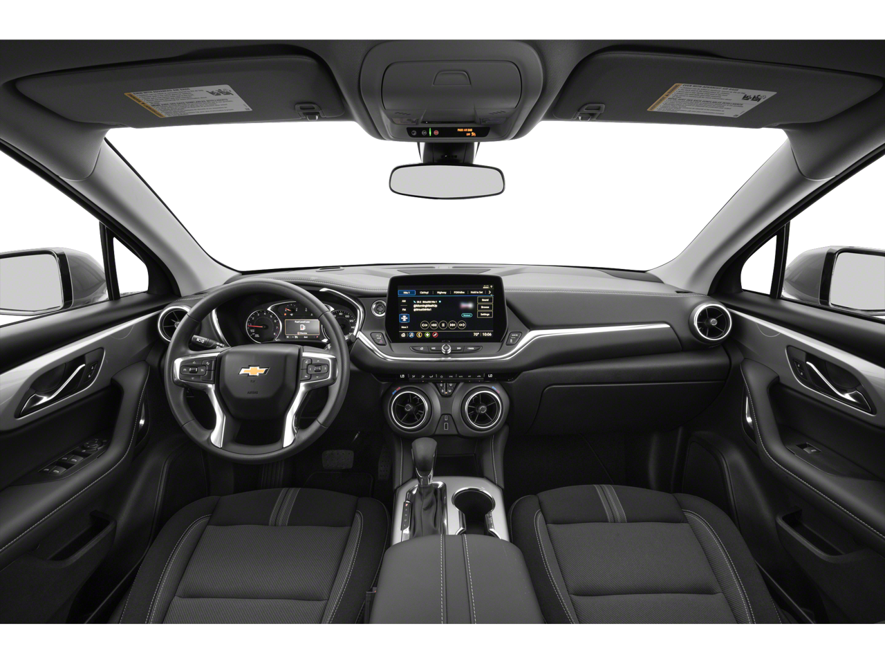 Black 2025 Chevrolet Blazer RS AWD 9-Speed Automatic with Overdrive 3.6L V6 SIDI AWD, 3.49 Final Drive Axle Ratio, 4-Wheel Disc Brakes, 6-Way Power Front Passenger Seat Adjuster, 8 Speakers, 8-Way Power Driver Seat Adjuster, Apple CarPlay/Android Auto, Auto High-beam Headlights, Auto-dimming Rear-View mirror, Automatic temperature control, Bose Premium 8-Speaker Audio System Feature, Bumpers: body-color, Child-Seat-Sensing Airbag, Dual front impact airbags, Dual front side impact airbags, Electronic Stability Control, Front dual zone A/C, Fully automatic headlights, Heated door mirrors, Heated Driver and Front Passenger Seats, Heated steering wheel, Knee airbag, Leather Shift Knob, Leather steering wheel, Low tire pressure warning, Navigation System, Occupant sensing airbag, Outside temperature display, Power Driver Lumbar Control, Power Liftgate, Power steering, Power windows, Preferred Equipment Group 1RS, Radio: Chevrolet Infotainment 3 Premium System, Rear window wiper, Remote keyless entry, Security system, SiriusXM with 360L, Speed control, Steering wheel mounted audio controls, Stop-Start Engine Control System, Traction control, Trip computer, Wheels: : 20 Technical Gray Aluminum.